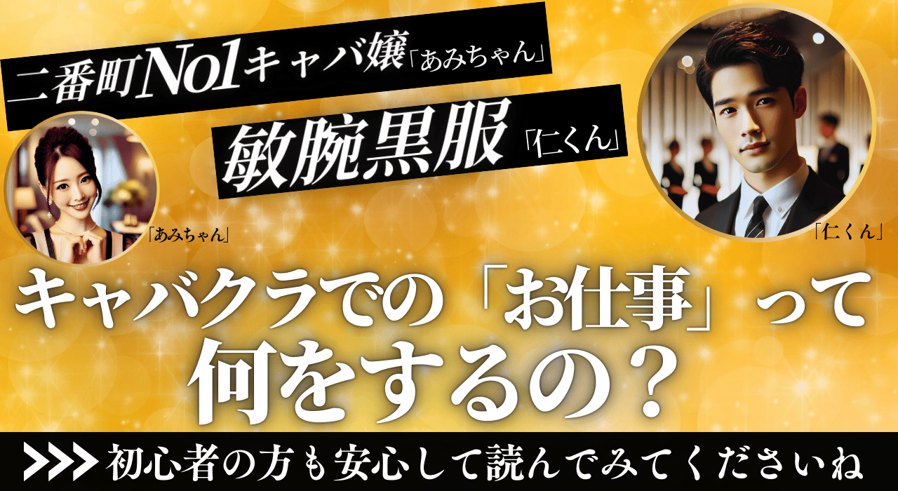 こんにちは!NAVIPARA(ナビパラ)へようこそ!今回は愛媛県松山市二番町で働く人気キャバ嬢「あみちゃん」と、頼れる敏腕黒服「仁くん」キャバクラでの仕事内容について分かりやすく説明してもらいます。初心者の方も安心して読んでみてくださいね。